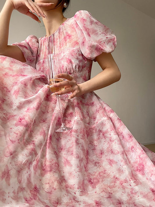 Aconiconi|Butterfly Dance Wind Firefly French Short Sleeve Dress