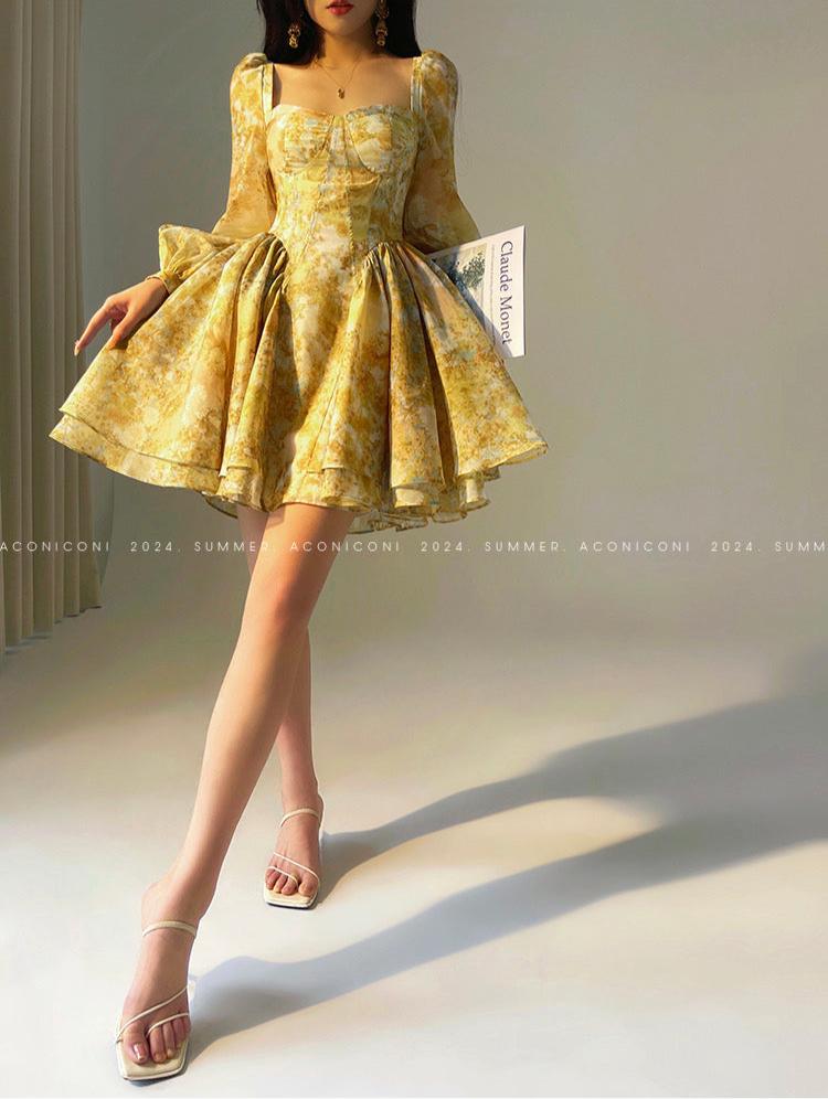 Aconiconi|Canglan Sweetheart Long Sleeve Dress