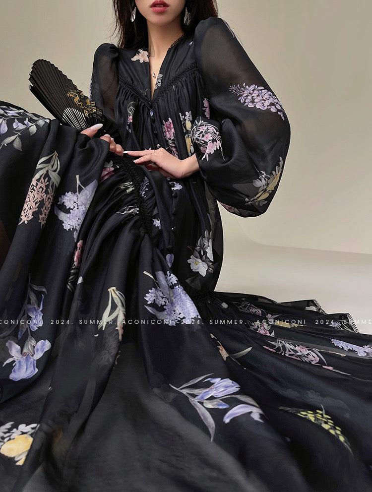 Aconiconi|Daisy Dream Lace Summer Long Sleeve Long Dress