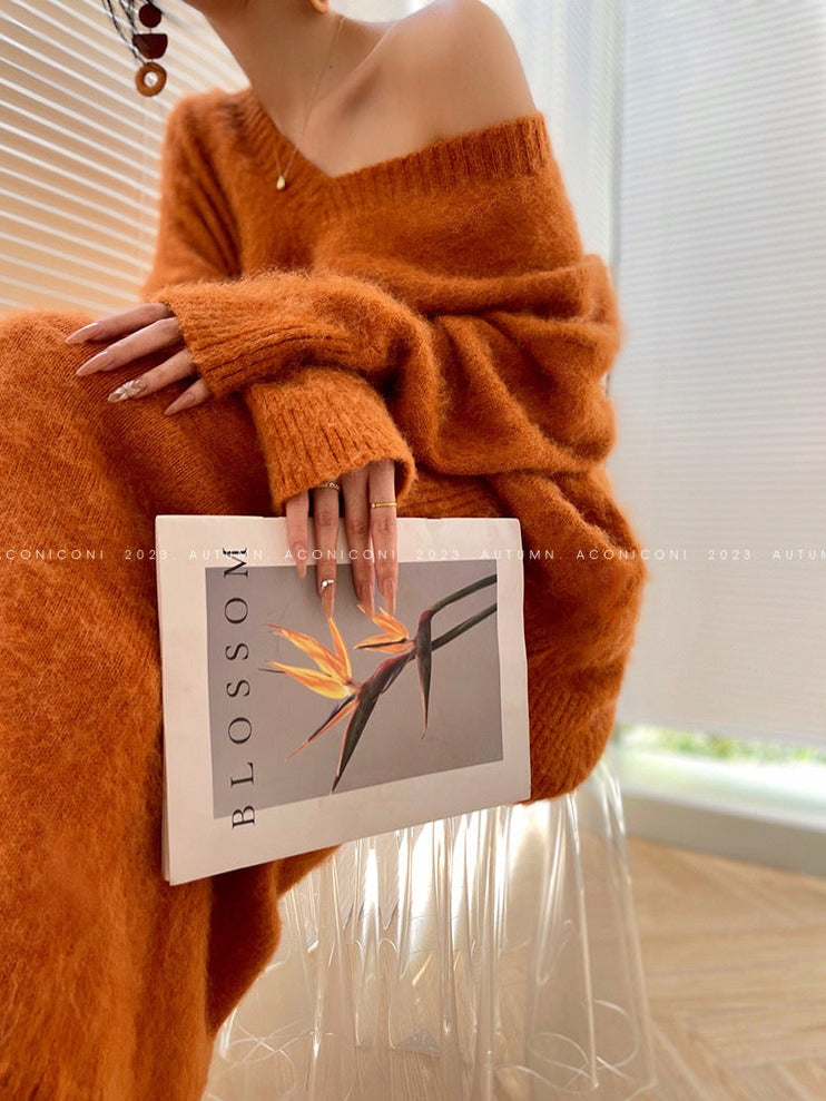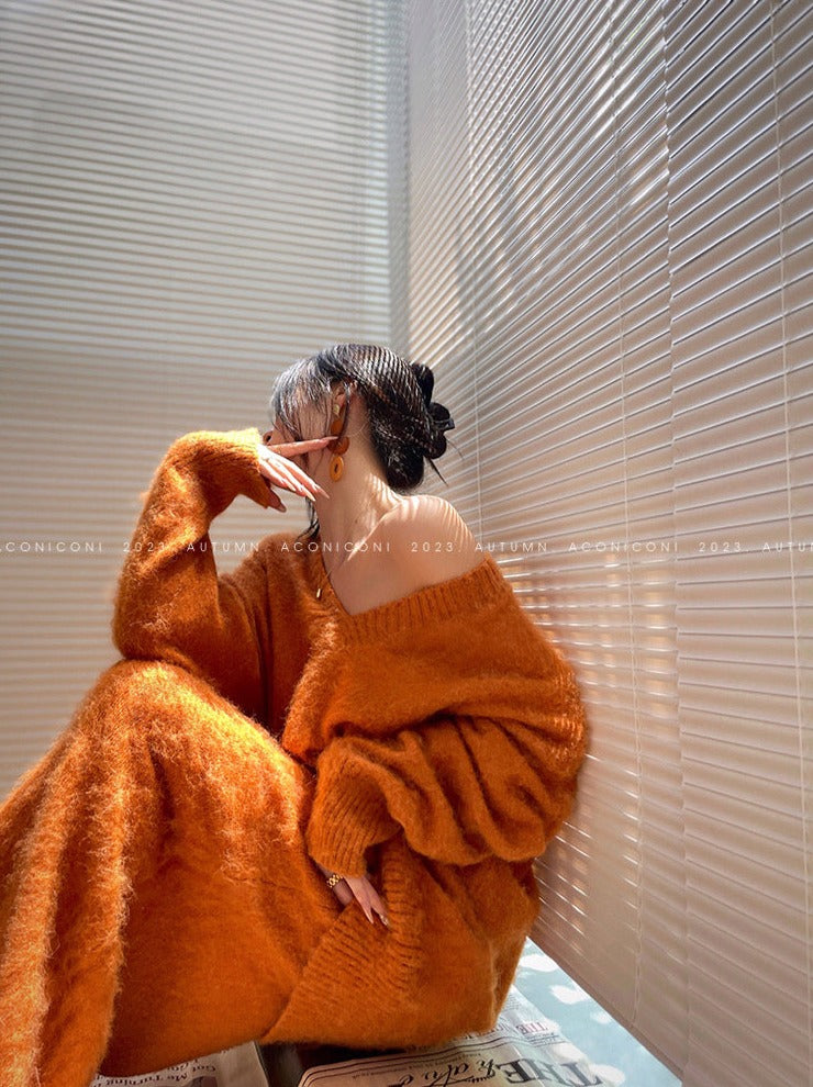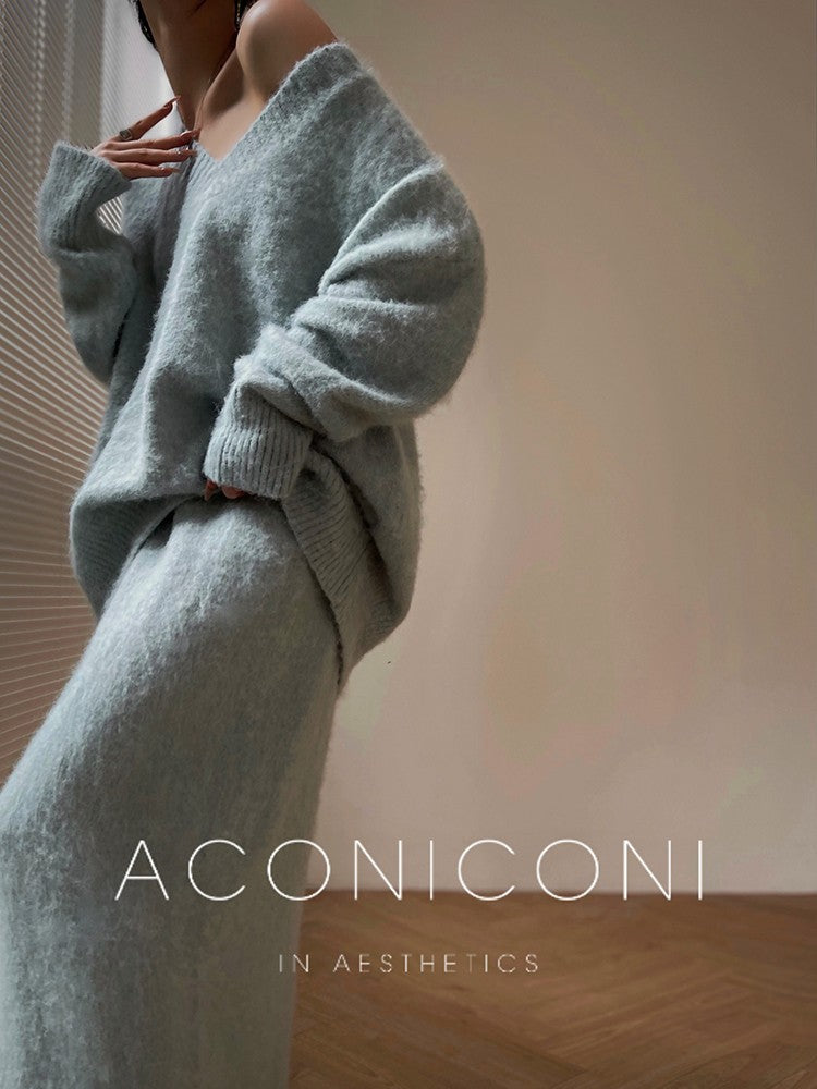 Aconiconi|North Island girl's loose V-neck wool sweater set
