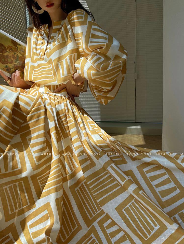 Aconiconi|Opal Dusk V-neck Temperament Dress