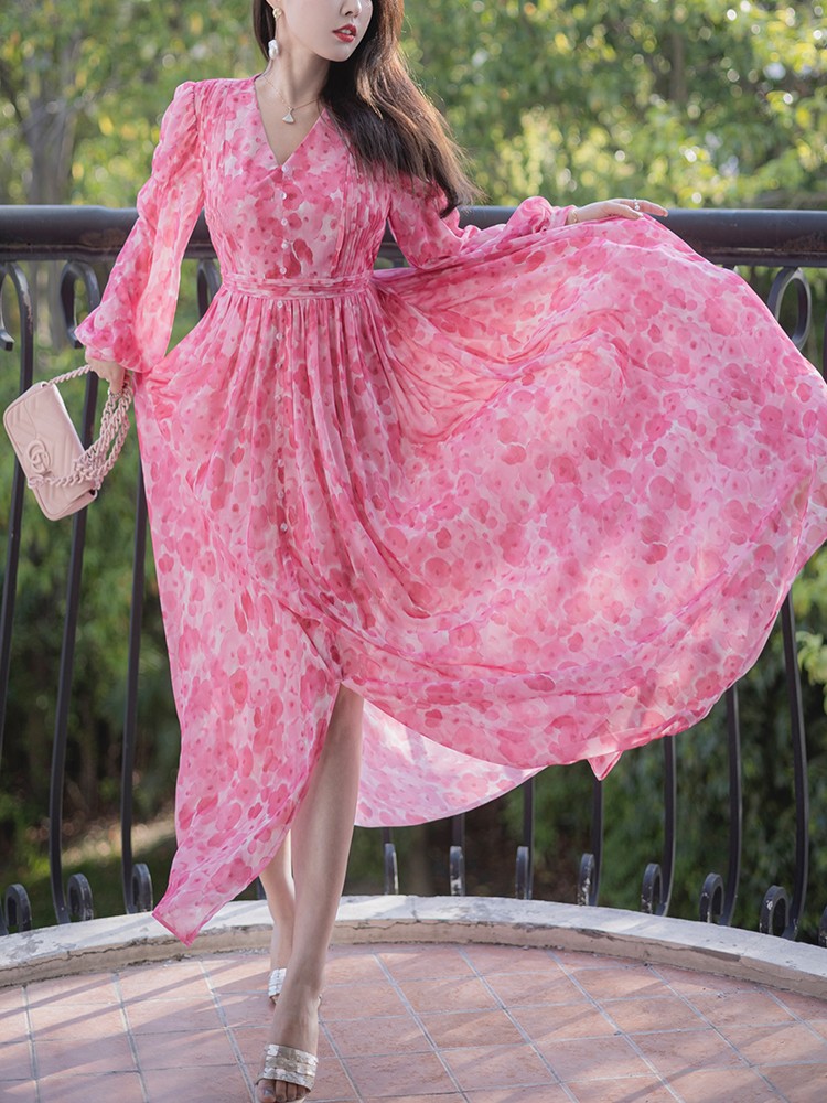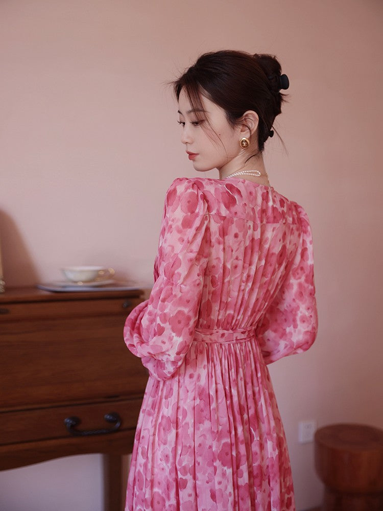 ReVe | Cherry Blossom Floral Chiffon Long-Sleeved Dress
