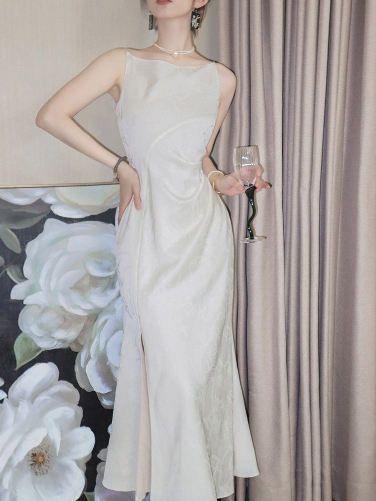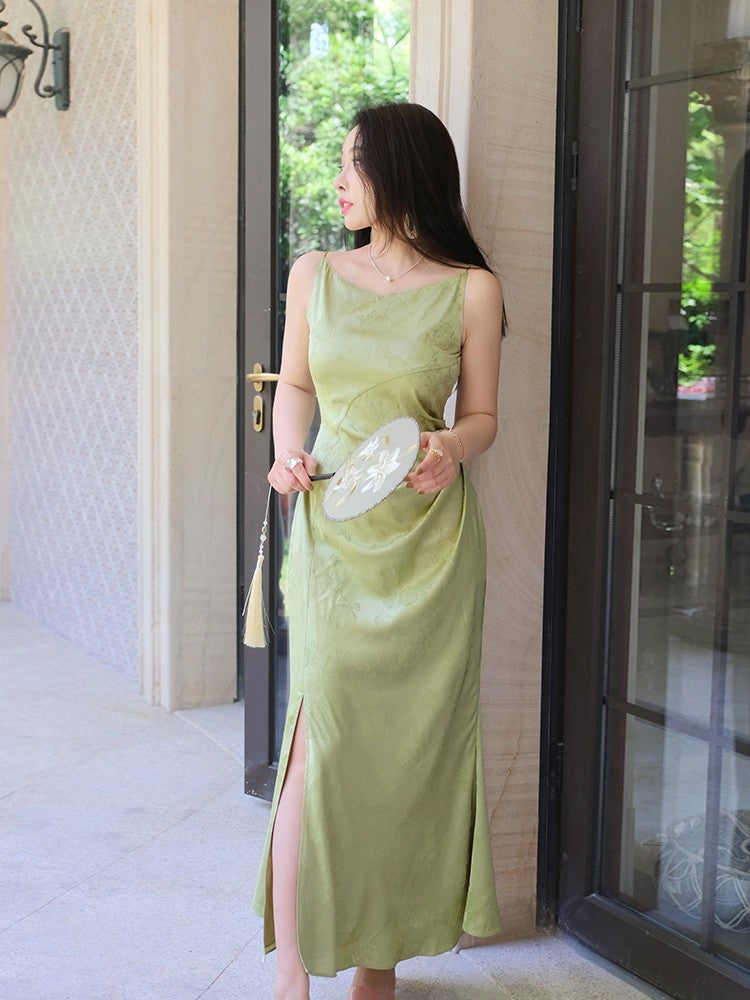 ReVe | Oriental Dark Pattern Peony Jacquard Phoenix Satin Suspender Dress