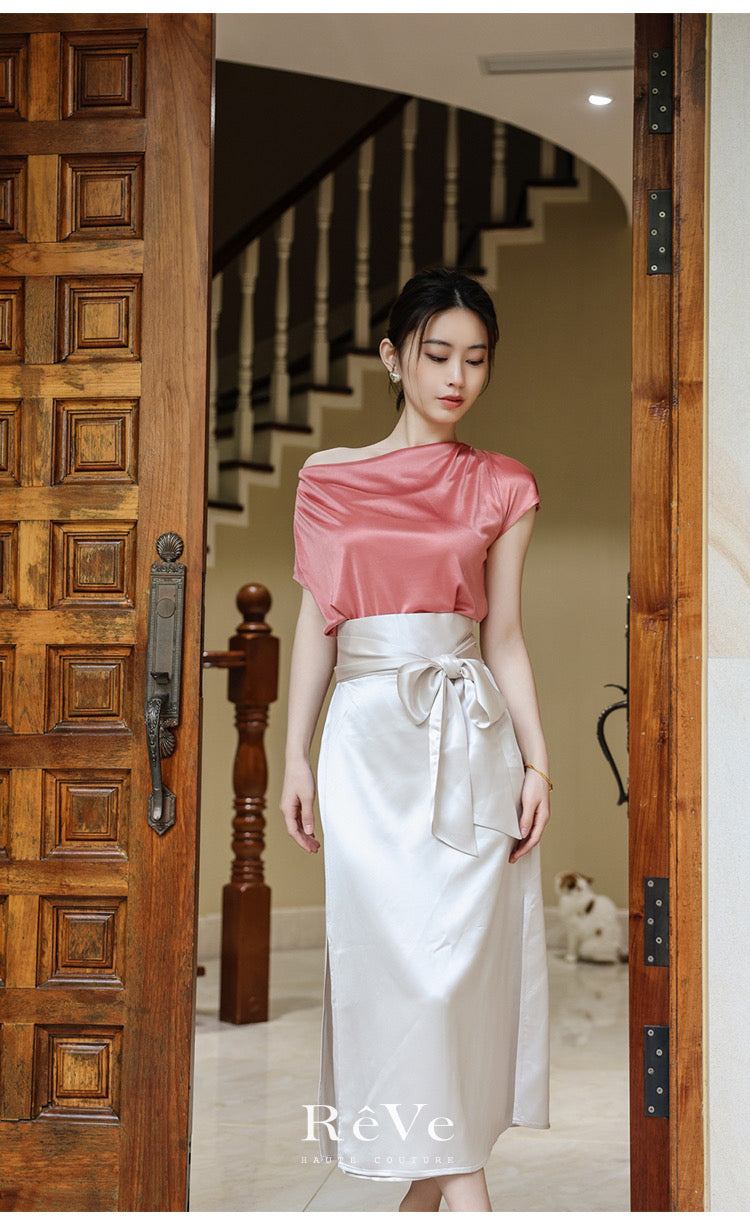 ReVe | Satin Cross Strap High Waist Temperament Skirt